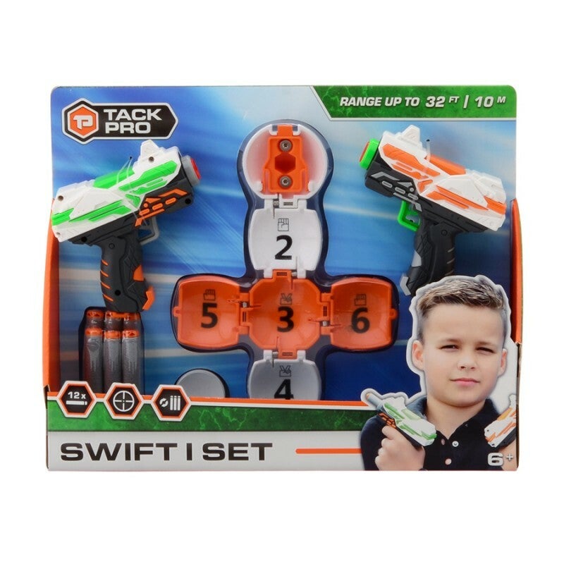 Pro shooter duo wordt geleverd met 12 foam darts.Deze shooter schiet de foam darts bijna 15 meter ver.Inclusief een rollend schietdoel.